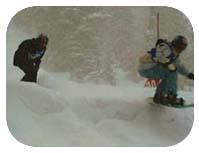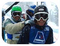 Iwa Wojcik helping Jason Toth stay warm during the Kirkwood BoarderCross quarter finals. Yes, it was snowing and cold.