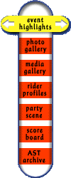 AST Halfpipe Finals Restructured (March 15, 1997) Originally, two halfpipes were planned for the North American Championships at Mt. Snow, Vermont, however, after the cancelled GS on Friday organizers decided to hold one halfpipe and use Saturday as a qualifier for Sunday's finals. "With the GS cancelled and nearly 40 people on our halfpipe waiting list we decided to combine the prize money and points and allow everyone to compete in one halfpipe," said Brian Snead, mac daddy of the AST Tour. Because of this the format for the pipe has changed as well. The top 8 and 4 men and women still advance from the first round, then 9 through 32 have a spot in Sunday's semi-finals, while women's finishers 5 through 16 do the same. Competitors 33 through 64 in the men's and 17 through 32 women will take another run on Saturday and the top 8 and 4 will advance to the semi finals on Sunday. It's confusing, but what it means is that everyone gets three chances to advance into the finals on Sunday, and that the pipe will have double the Paul Mitchell Rider's Cup points. The AST North American Finals continues tomorrow with the halfpipe finals at Mt. Snow, Vermont. Bad Weather Cancels North American Championship Giant Slalom (3-14-97)