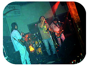 on stage at the Snow Bar. Too bad there were no signs of a crowd because