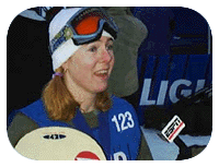 Tricia Byrnes on the ESPN mic after her halfpipe win at Hunter Mountain.