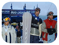 Men's halfpipe top three Jeff Brushie, Frank Wells (right), and Seth Wescott (left).