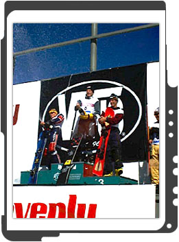 Krassnig, and Fadri Mosca celebrating their 1, 2, 3, placings in the Slalom