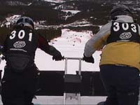 Austrian Ine P�tzl, the first lady of what�s now the US 40/Santa Cruz team, was equally in control of the women�s field. Like Delerue, P�tzl took the time trials and all of her heats. Ine the ISF Women�s World Champion in 2000, was challenged only by Norway�s Line �stvold who nearly made a pass for the win within sight of the finish line. Rounding out the podium was Austria�s Katarina Himmler, who competes in boardercross when her Alpine racing schedule allows for it. Leslee Olson was the top-placing American woman, she wound up in fourth.