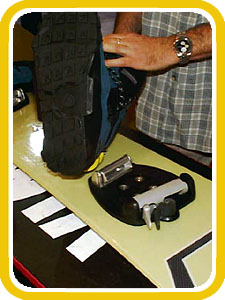 Functionally, the new Airwalk Quad step-in binding isn't all that different from the product they showed dealers at the Salt Lake City on-snow demo in January. The new Quad, however, is a large jump forward in the all important look and feel department. The old system had a release cable that made stepping out feel more like winding up a Speak-n-Spell than freeing your boot from a snowboard. Now the cable is gone and in it's place are two levers. Squeeze them and the binding releases. The new quad also lost it's black plastic housings. Now, with all the metal parts plainly visible, the binding looks more secure and solid, and, well. . . much more like a binding than the old one did. Airwalk has remained close to their original goals: keeping the boot down on the deck, allowing for a normal walking feel, and the binding gets progressively tighter while one is riding. Luckily, Airwalk has kept the production Quad boot pretty close to the last demo model. The Quad boot features forward lean adjustability and is probably the best step-in boot I've ridden.