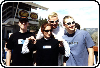 Tina Basich and the boys from Blink 182. Hey, wait a minute. They look like snowboarders! BACK | NEXT