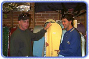 (October 12-13 - Burlington, VT) Reps, Bros, Pros, and Hos, were packing the B-Side this weekend for their annual swap and sale. The B-Side's swap and sale has gained a cult following over the years. For the Octoberfestivities the alley behind the store was home to a board swap tent, trampoline, and skate ramps. The Burlington pro-rider posse was well represented with the likes of Seth Neary, Seth Miller, Mike Montanaro, Sean O'brien, Jeff Moran, Kevin Scott, and others. Besides the riders, customers filled the store seeking bargains, watching videos, jumping on the tramp, and drinking the free Snapple. On the sidelines were manufacturers reps and reps from local resorts, hyping their wears and helping the staff assist customers with their purchases. When closing came, customers left with new goods, pros left with cash from their used goods they sold, and the B-Side staff left exhausted. Click here for more B-Side photos. |