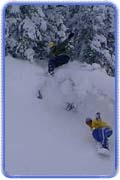 After everyone sessioned the cliff a few times, Josh stole the show by launching an insane line which entailed ollying a rock, riding a spine down a steep stone face, and coming out with his feet below him into the powder field in a smooth landing. Everyone breathed a sigh of relief at his contact with the powder after questioning his line. He just sort of smiled the "all in good days work" kind of smile and unstrapped for the hike out. As we sweated up and out of the canyon back toward the resort, racing against the fast approaching nightfall, all were content with what we found at Lost Trail. No destination resort indeed, but absolutely a real piece of Montana that should be visited if you ever get lost (sorry, couldn't help myself) while driving down highway 93 out of Missoula. |