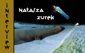 Age: 21 D.O.B.: March 4, 1978 Sponsors: Burton, Arnette Years Riding: Seven Boards: Burton Custom 152, Balance 152.5, Feel Good 155 Stance: Width: 19 inches Front: 24 degrees Back: 12 degrees, lots of forward lean, Burton SI System Recent Competition Results: First �98 Innsbruck Air & Style Quarterpipe; First �99 European Open Halfpipe; First �99 Davos ISF World Cup Halfpipe; Third �98/99 season ISF World Halfpipe Ranking � O.C.D. (Obsessive-Compulsive Disorder), Ice Cream, and Natty Z. Natasza stands outside the group intently listening and reflecting carefully, forming just the right words. However, by the time she�s ready to speak, the conversation has moved on. The moment may have passed her, but she stands still, waiting for her next opportunity. Natasza may not say much, but she definitely knows how to make a statement. Believe it or not, her riding speaks for itself.