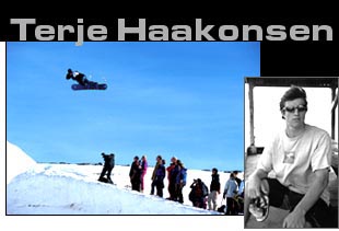 Daniel Franck: "There are two types of peoplegood people and bastards. Terjes a good person. He taught me to not take things so seriously, be focused, and love life. Snowboarding is only one of his many talents, but, with all respect, it is why hes famous. Hes always mellow to be aroundno stress, all smooth. Hes the one who brought me to America. He introduced me to Budweiser and many good people, which opened a whole new world for meI am very thankful. Terjes a good friend who I hope to see more of in the snow." Jake Burton On The Sport: "Terje has single-handedly elevated the sport of snowboarding. People talk about great players on sports teams who make everybody on their team play better; Terje has made everybody in the whole sport ride better. Before Terje, everyone had a pretty good idea of what snowboarding was about. From pro riders to weekenders, we were all progressing at a pretty good rate along with our equipment. Once Terje showed up, things instantly changed radically. Terje redefined technical. He redefined big. He redefined style. But the most incredible thing is Terje redefined all these aspects of riding at once. "Its hard to define Terjes talent. The best way to explain his riding ability is through some of the weirder things hes done. For example, showing up at the U.S. Open Banked Slalom without a practice run, running last (on a trashed course), and taking second place; also, qualifying for the Mt. Baker Banked Slalom finals riding the whole run fakiethese are feats mortal snowboarders wouldnt even consider trying. The guy fkin rules." Personally: "Terje and I have always got along real well and have had a good time together. We respect each other, but more importantly, we are very similar in that snowboarding has completely changed our lives. I think we both know that if it werent for snowboarding, neither one of us would be nearly as successful as we are. I think because we both understand that, it gives us a bond upon which we have built a real solid friendship."