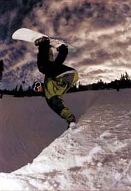 Shortly before Marcus� high school graduation, I asked that age-old question, "Yo Marc, what are you thinking of doing after graduation? You know, like for a living?" "I was thinking of snowboarding." Trying to collect myself and not laugh out loud, I asked "Where would you live, and who would pay the bills?" "Bend. I could get a job and move in with some friends." Now I really had to do some fast thinking, this was much more serious than I�d thought. What would the neighbors say, not to mention the rest of the family? Another life wasted on the ski slopes�after all the only way to make a real living as a pro athlete is in the NBA, the NFL, or in Major League Baseball. Right? I knew deep down that Marc was serious. Finally, I gathered my thoughts, "How would it be if you enrolled at Central Oregon Community College, and did your snowboarding after school?" "I don�t know, Dad, I really love to snowboard." "Well, I�d be willing to pay for a modest living arrangement if you would keep reasonable grades, and a modest class schedule." I explained. "You don�t need to answer now." "Yeah, I�ll think about it." After some careful financial calculations, he began to realize that it might not be too bad of a deal. By working at our plumbing shop in the summer, and attending school in the winter, Marc figured he�d have the time he needed to ride. Now, my son�s a fast thinker, too, so he asks, "What would I do for transportation? You know, to get to school?" "How about with four wheels? Two on a bike and two on that Honda scooter," I responded. "Then how will I get from Bend to Portland to see you and Mom?" "The bus is a great way to travel." His mother and I didn�t want this deal to be too easy. "It only makes a dozen or so stops along the way, probably won�t take you five hours to go each way." I know he wasn�t the first kid to have his parents as a sponsor, but it was a strange for us. But after some years of hard boarding and soft schooling, Marc has become a professional snowboarder. We�re very proud, and a little relieved, that he can actually make a living doing what he loves.