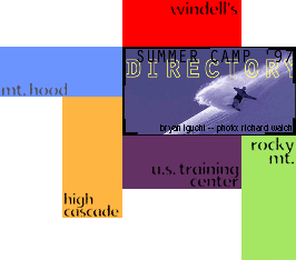 4457 SE Wynnwood Dr. Hillsboro, OR 97123 No information was made available to me. Inside Line: Unfortunately any information about this camp was not turned into me or mailed to me. After repeated attempts to notify this camp, I was left with nothing. From past experience, I do have to say that Frank Wells, Salomon Snowboard rider, does an outstanding job with the halfpipe. He has years of experience in creating top notch pipes and parks."
