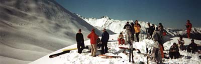 2001 High Cascade Snowboard Camp New Zealand trip participants; Bob and Keri Smyth, Keith Hannum, CM Dietrich, Stefan Winnicki, Dax Marchini, April Bankston, Lee Langford, Woody and Cheryl Beverly, Stephen Scott, Kellie Wright, Chris Coyle, Angela Jolly.